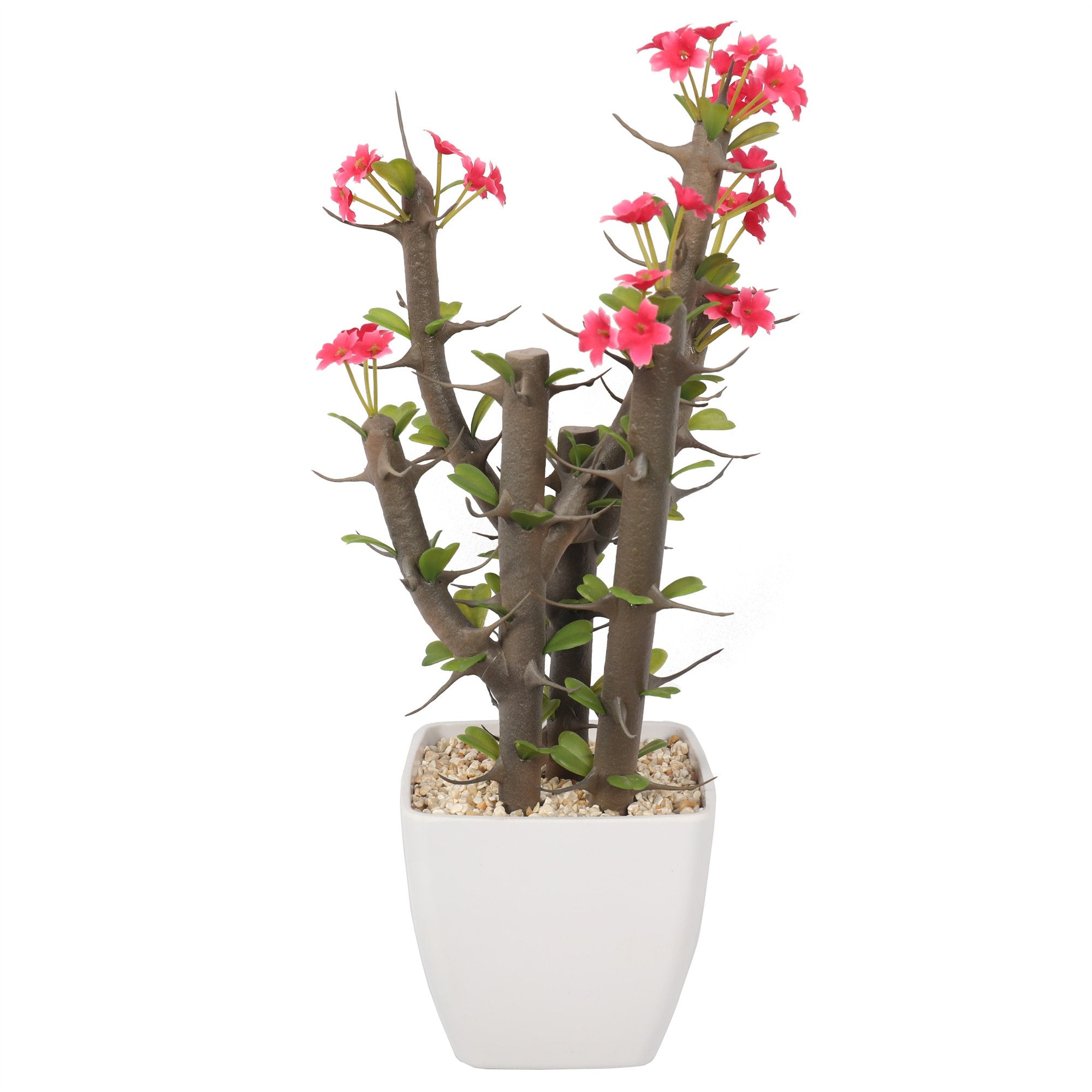 14" Artificial Flowering Walking Stick Cholla Cactus Plant w/Pot -Pink/Green-Artificial plants/flowers