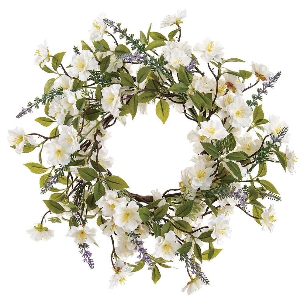 15" Cherry Blossom & Lavender Silk Flower Wreath -Cream/Lavender (Pack of 2)-Artificial plants/flowers
