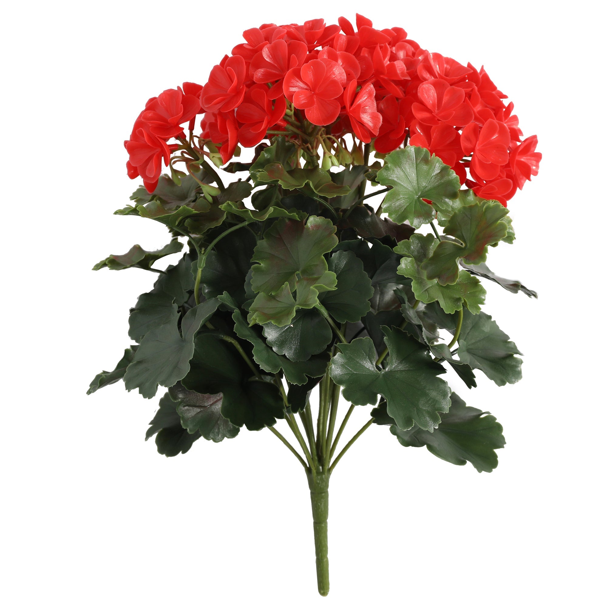 15" Outdoor UV-Proof Artificial Geranium Flower Bush -Red (Pack of 6)-Artificial plants/flowers