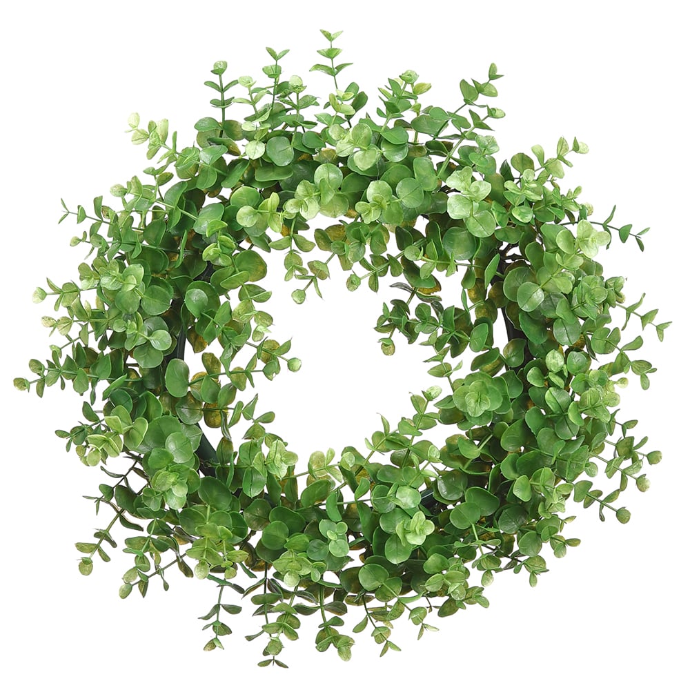 16" Silk Eucalyptus Leaf Wreath -Green (Pack of 2)-Artificial plants/flowers