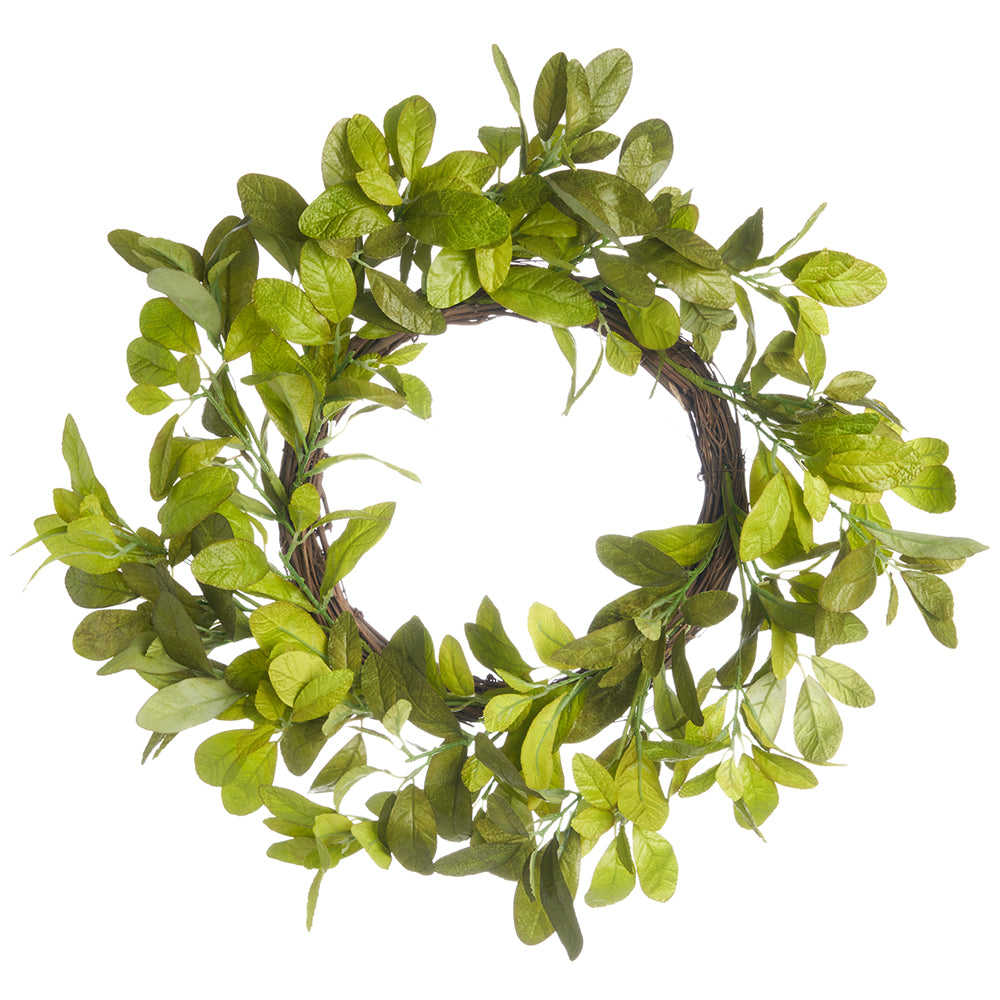 18" Silk Liparis Leaf Wreath -Green (Pack of 2)-Artificial plants/flowers