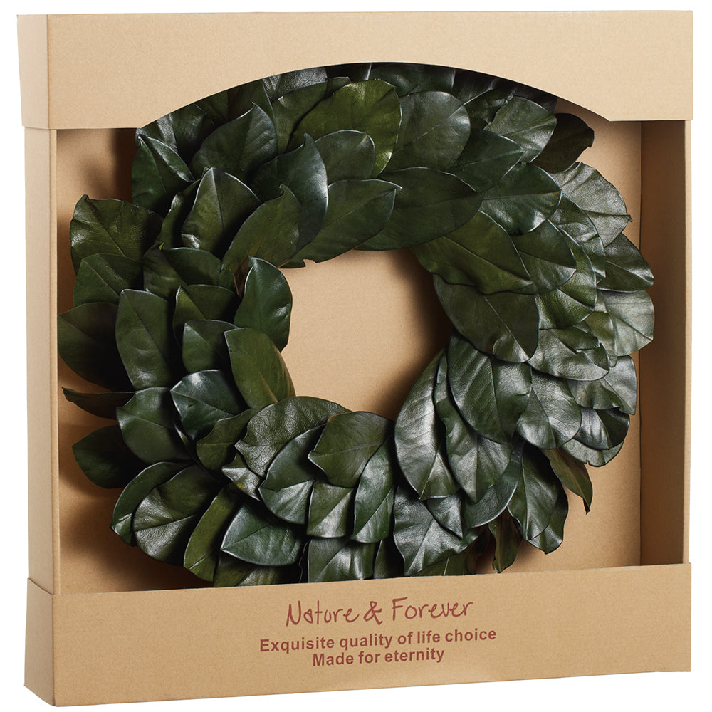 19" Preserved Magnolia Leaf Wreath -Green-Artificial plants/flowers