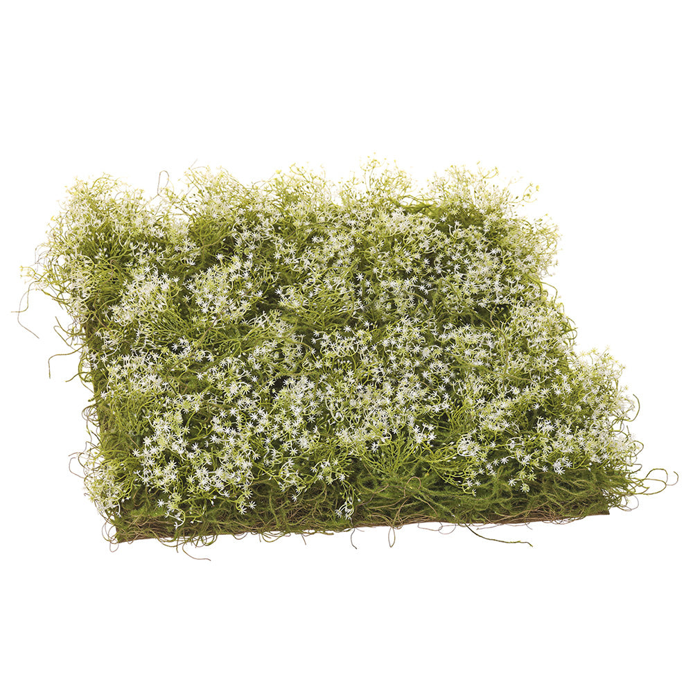 20"x20" Moss & Gypsophila Flower Artificial Mat -Green/White (Pack of 2)-Artificial plants/flowers