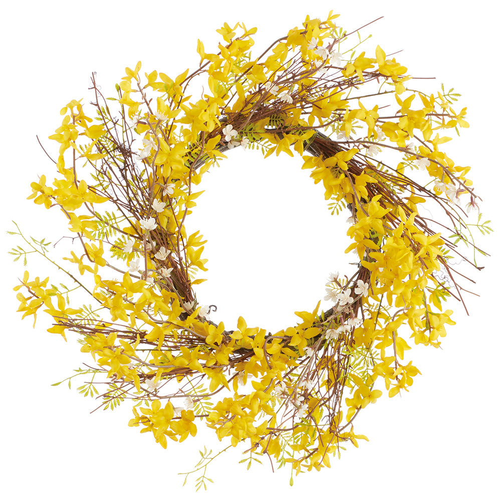 24" Forsythia Silk Flower Wreath -Yellow-Artificial plants/flowers