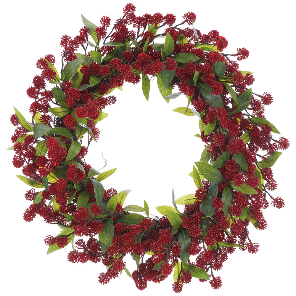 24" PE Sedum Artificial Wreath -Red-Artificial plants/flowers