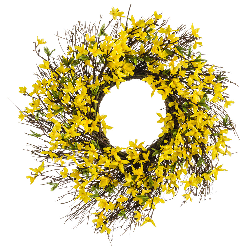24" Silk Forsythia Blossom Flower Wreath -Yellow-Artificial plants/flowers