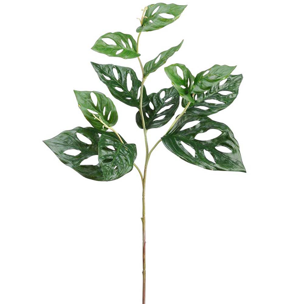 Stunningly beautiful, this 26" Real Touch Split Leaf Philodendron Monstera Silk Leaf Stem in Green would be perfect for all types of floral arrangements or to add a splash of green to tabletops and office desks. Get the potted plant effect by placing a bunch of these in a pot by the window or use the leaves in a bouquet to add some green relief to the colorful flowers. Our high-quality materials will keep your greenery stems and leaves looking fresh and vibrant for many years, and they'll never need a drop of water.