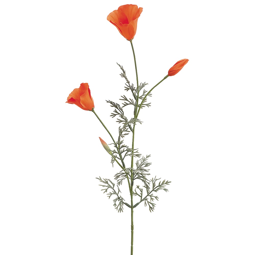 28.5" Silk California Poppy Flower Spray -Orange/Gold (Pack of 12)-Artificial plants/flowers