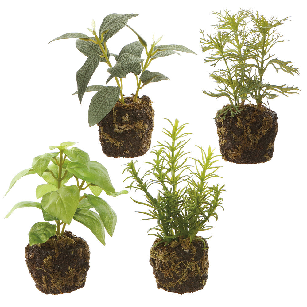 6" Set Of Assorted Herb Artificial Plants w/Soil -Green/Gray (Pack of 3)-Artificial plants/flowers
