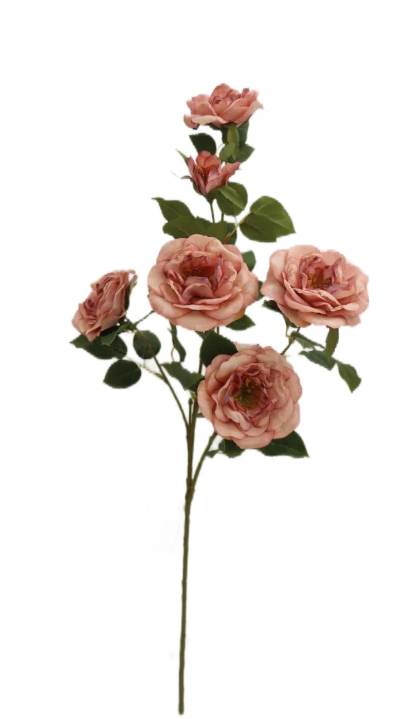 Artificial Open Rose Spray x 69cm long with 6 Heads - Pink-Artificial plants/flowers