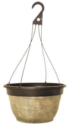 Crackle Hanging Basket 12" - Ceramic Cream-Artificial plants/flowers