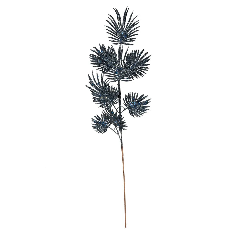 Glitter Feather Leaf Stem x 70cm - Navy-Artificial plants/flowers