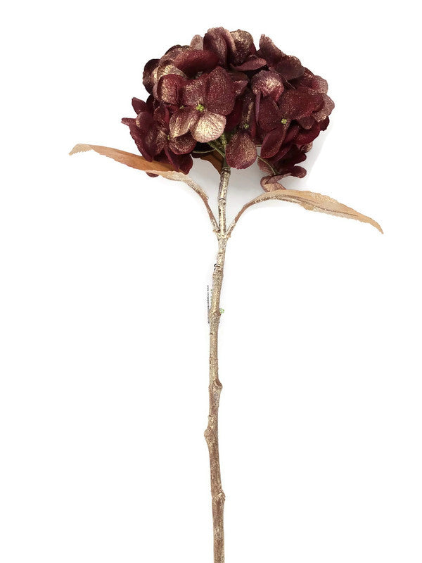 Glittered Single Hydrangea - 45cm long, 18cm diameter- Burgundy-Artificial plants/flowers