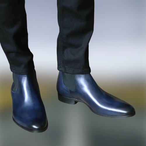 Men's Navy Blue Handmade Ankle Chelsea Boots