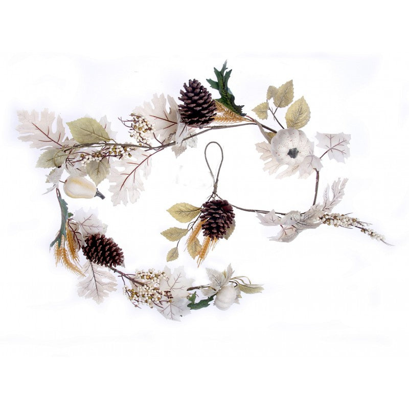 White Pumpkin & Pinecone Garland x 182cm long - White/Brown-Artificial plants/flowers